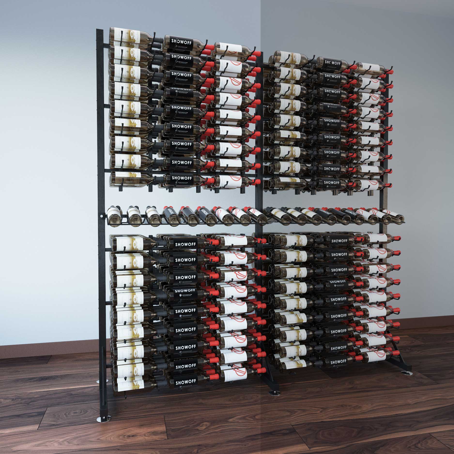 Construisez un mur entier de présentoirs à vin contemporains qui maximiseront la présentation de bouteilles de vin dans votre magasin. Ils laisseront vos clients en admiration. Ce présentoir à vin autoportant se connecte à un Îlot de vente au détail no.7 existant. Il ajoute 288 bouteilles supplémentaires d’espace de présentation de premier choix. D’une hauteur de 2,13m (84 pouces), le plus grand de nos présentoirs en Îlot de bouteilles de vin met également en valeur 18 bouteilles sous forme de présentation. Il permet de présenter des dizaines d’autres bouteilles sur nos supports à bouteilles de vin en acier situés en dessous.